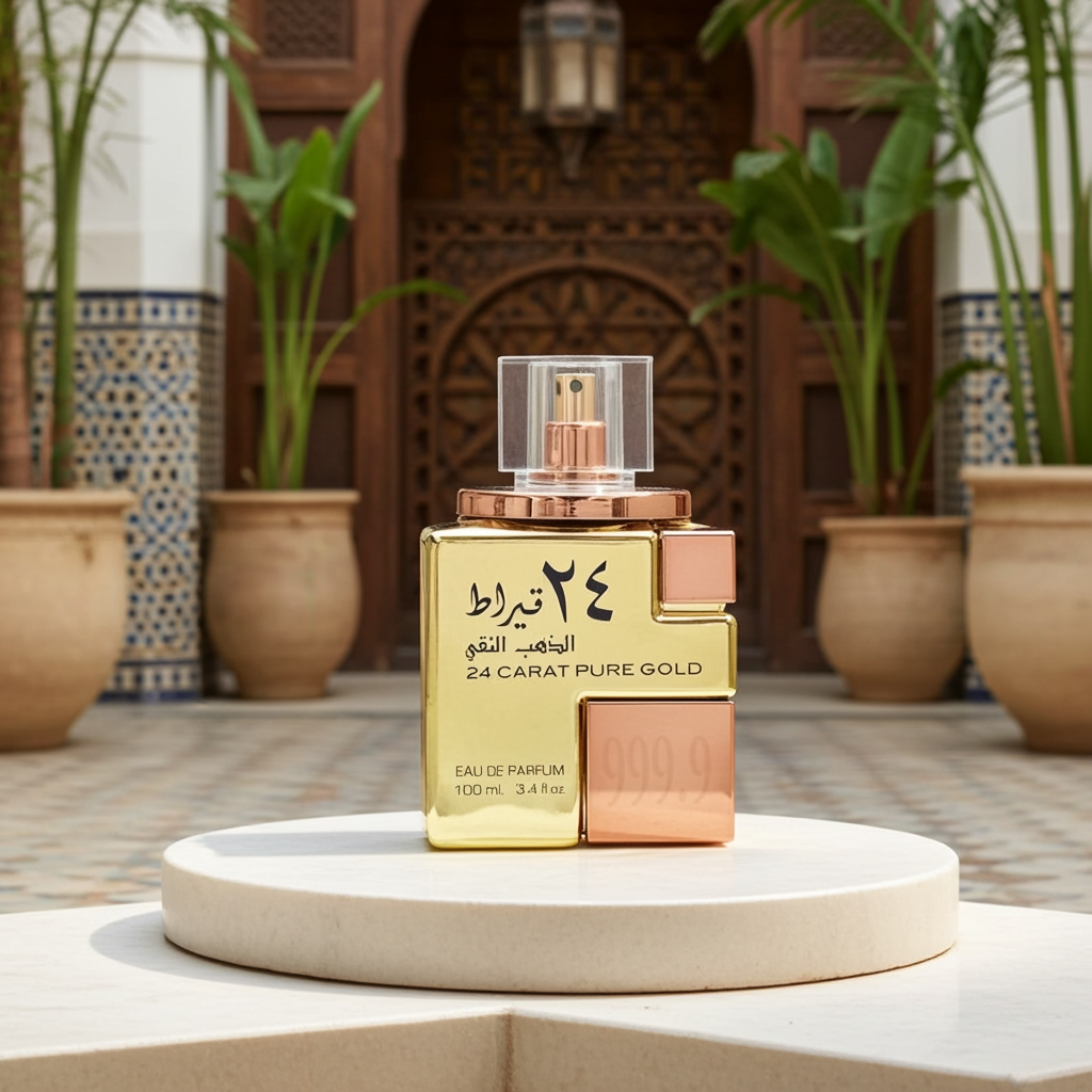 El perfume unisex Lattafa 24 CARAT PURE GOLD es una fragancia en formato Eau de Parfum diseñada para adultos, presentada en un práctico frasco vaporizador de 100 ml, ideal para un uso diario o continuado sin necesidad de recarga frecuente. Fabricado en los Emiratos Árabes Unidos, se inscribe en la perfumería árabe contemporánea, conocida por composiciones intensas y duraderas, ofreciendo una estela notable y buena fijación sobre la piel. Su formulación incorpora Alcohol denat (ethyl alcohol) como base alcohólica y una combinación de agua Water (Aqua) con compuestos aromáticos como Fragance (parfum), Benzyl salicylate, Citronellol, Citral y Geraniol, ingredientes habituales en perfumería que aportan matices florales, cítricos y ligeramente dulces, equilibrados para resultar adecuados tanto para hombre como para mujer. La denominación 24 Carat Pure Gold sugiere una composición de carácter opulento y cálido, en línea con los perfumes árabes de inspiración oriental, pensada para quienes buscan un aroma con presencia y personalidad sin encasillarse en un género específico. El producto puede presentarse en envases con variaciones de diseño en función de promociones o temporada, manteniendo siempre la misma formulación interior, lo que garantiza consistencia en la experiencia olfativa independientemente del aspecto del frasco. Gracias a su concentración en Eau de Parfum, unas pocas pulverizaciones son suficientes para disfrutar de su aroma durante horas, siendo apropiado tanto para uso diario como para ocasiones especiales. En conjunto, este perfume unisex de Lattafa ofrece una propuesta aromática intensa y versátil, adecuada para quienes prefieren fragancias marcadas con buen rendimiento y un estilo claramente influenciado por la perfumería de Oriente Medio.